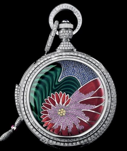 Parmigiani Fleurier Fibonacci – карманные часы из белого золота, украшенные инкрустацией в виде цветка лотоса, который имитирует принцип золотого сечения Фибоначчи. Цветок усыпан бриллиантами, рубинами, изумрудами, сапфирами и полудрагоценными камнями общим весом 49,5 карата. Часы оснащены вечным календарем, минутным репетиром и указателем лунных фаз. Изготовляется Parmigiani Fleurier Fibonacci исключительно по заказу. Стоимость роскошного аксессуара будет составлять 2,4 миллиона долларов, а процесс изготовления продлится около 2 лет.