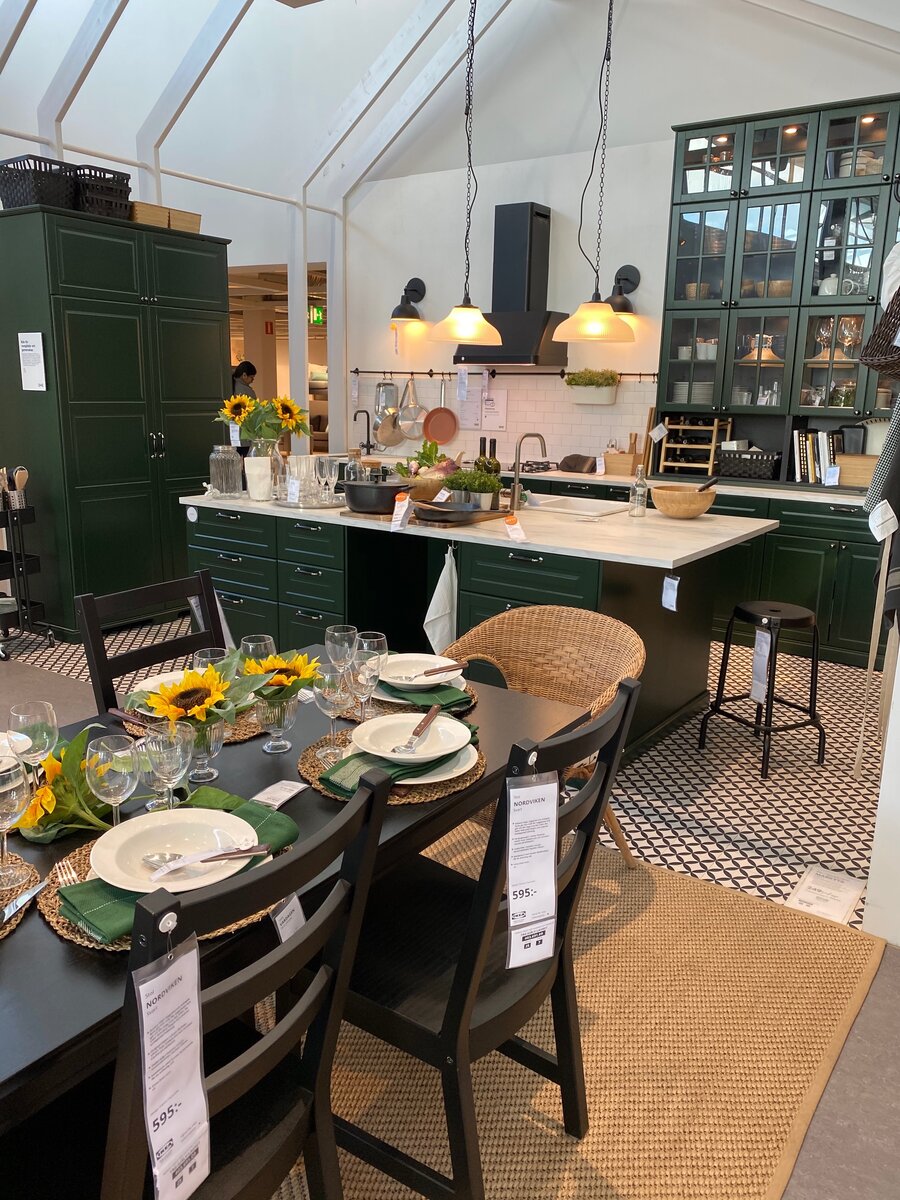 Всем привет! Решили сегодня заехать в Икею, чтобы сделать несколько подборок для вас. Итак, показываю. Что же наваяли для нас шведские дизайнеры. ⬆️ Сразу у входа, наткнулись на вот такую кухню с островком. Такая летняя сервировка. Симпатично, правда? ⬆️ Уютненько) Кстати в Швеции вот такие микроволновки, как на фото, очень популярны. Их сейчас устанавливают при постройке дома, сразу вместе с гарнитуром, духовкой и плитой. Да, в Швеции всегда, дом или квартира сдаётся в эксплуатацию сразу с готовой кухней и при переезде, никто кухню не забирает. ⬆️ Кухня с островком и с кладовой. Эта кладовка мне прям в душу запала, правда я бы дверцу добавила. P.S Заметили кухню для маленькой помощницы?) ⬆️ Кухня для барби 💕 ⬆️ Обратите внимания на стену с фоторамками. Она медная. Прикольно, но мне кажется, что сложно с ней в уходе. Малейшую каплю и отпечаток пальца, видно сразу. ⬆️ Классно, правда? Обожаю такие люстры. В прошлом доме покупала подобные, тоже в IKEA. Кстати очень удобно их мы