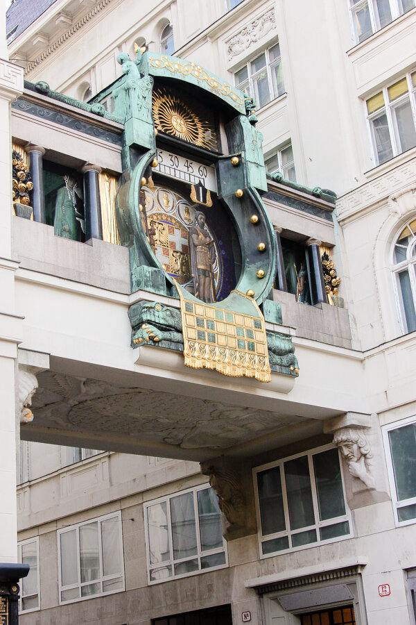 В Вене же есть совсем уникальные часы — якорные (Ankeruhr). У них на лицевой стороне нет стрелок в привычном понимании.