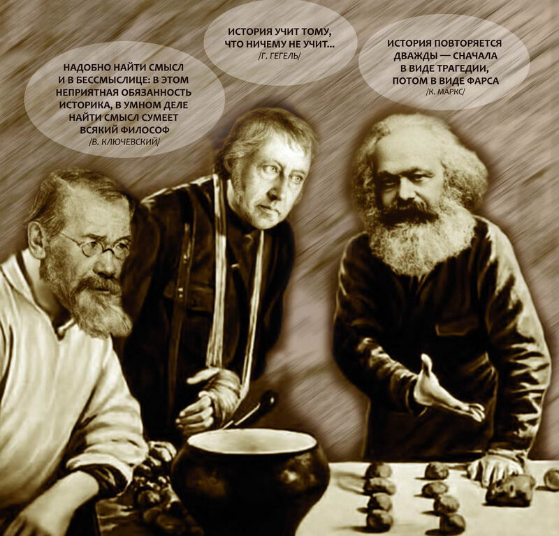 Георг Гегель был большим шутником. Одна из самых ярких его шуток вошла в наш быт плотнее, чем любимые цитаты из Исаака Бабеля. Ибо великого одессита знают только у нас, а Гегель известен всюду, где ступала нога гуманитария. Итак, речь пойдет о самой уникальной его фразе: -История учит тому, что ничему не учит! Такая формула замечательная у Георга получилось, что сразу хочется её размножить: -Психология учит тому, что ничему не учит! -Философия учит тому, что ничему не учит! Ну, и так далее... А ещё, хорошо бы таких плакатов напечатать побольше и развесить по всему городу. Народ бы враз поумнел. Впрочем, возможно, что смехотворность выражения родилась из-за неверного перевода... Адвокаты Гегеля предлагают, во избежание конфуза, такой вариант: -История учит лишь тому, что она никогда ничему не научила народы. Звучит уже не так смачно, как первый вариант... Чтобы как-то подправить возникшую корявость, адвокаты Гегеля предлагают следующий вари
