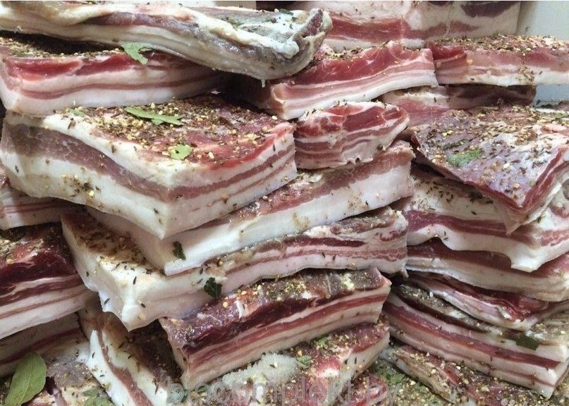 Ингредиенты: кусок свиной грудинки или сала соль чеснок Способ приготовления: Для обычной засолки необходимо только сало, соль, чеснок и немного терпения. Солить можно сало без прожилок и с прожилками – кто что любит. А можно взять кусок свежей свиной грудинки – с хорошими слоями мяса – о-о-чень вкусная штука. Итак, ножом счищаем с куска сала или грудинки возможные соринки. Если это грудинка – то небольшие косточки лучше убрать. Делаем разрезы вдоль грудинки до самой шкурки через 2-3 см. Чеснок чистим и разрезаем на пластинки. Соль нужна только крупная. Кладем сало на чистый лоскут материи, в который потом его и завернем. Раздвигаем разрез на сале, посыпаем солью, прилепляем к одной из стеночек ломтики чеснока. Соединяем разрез, открываем следующий – и так до последнего. Натираем солью и внешние стороны куска сала или грудинки, посыпаем сверху, кладем чеснок. Кстати, если это грудинка – то соли требуется немного больше, потому что верхний слой – это мясо. И не бойтесь