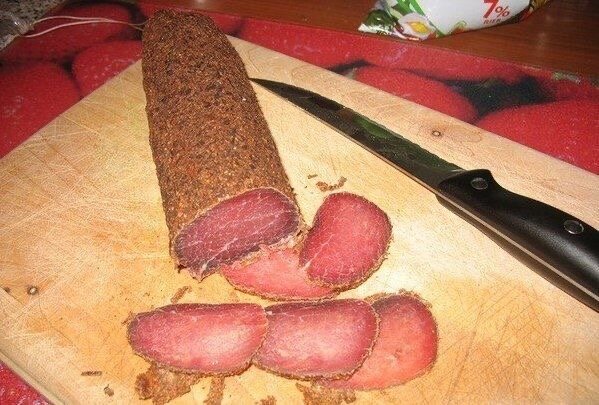 Конечно, этот рецепт приготовления бастурмы армянской нельзя назвать быстрым. Но его простоту этот факт не отменяет: вам не потребуется много стараний и усилий - мясо готовится само по себе. Главное, соблюдайте все пропорции и выдерживайте столько времени, сколько указано в рецепте. Ингредиенты: Говядина — 10 Килограмм (без костей) Чеснок — 600 Грамм Соль — 1 Килограмм Чаман — 500 Грамм Перец красный молотый — 100-200 Грамм (по вкусу) Способ приготовления: Мясо режем на куски, укладываем в миску и засыпаем солью. Два дня храним в холодильнике, затем куски переворачиваем (чтобы вторая часть просолилась) — и еще на два дня в холодильник. Достаем, выкладываем на пористую поверхность, сверху размещаем пресс. Держим 6 часов (или даже 12) - мясо должно стать сухим. Подвесим его на веревки сушиться еще на 12 часов, чтобы оно полностью стало сухим, даже на срезе. Теперь все специи смешаем между собой, разбавим водой, чтобы получилась смесь, как сметана. Обмакиваем мясо в этот