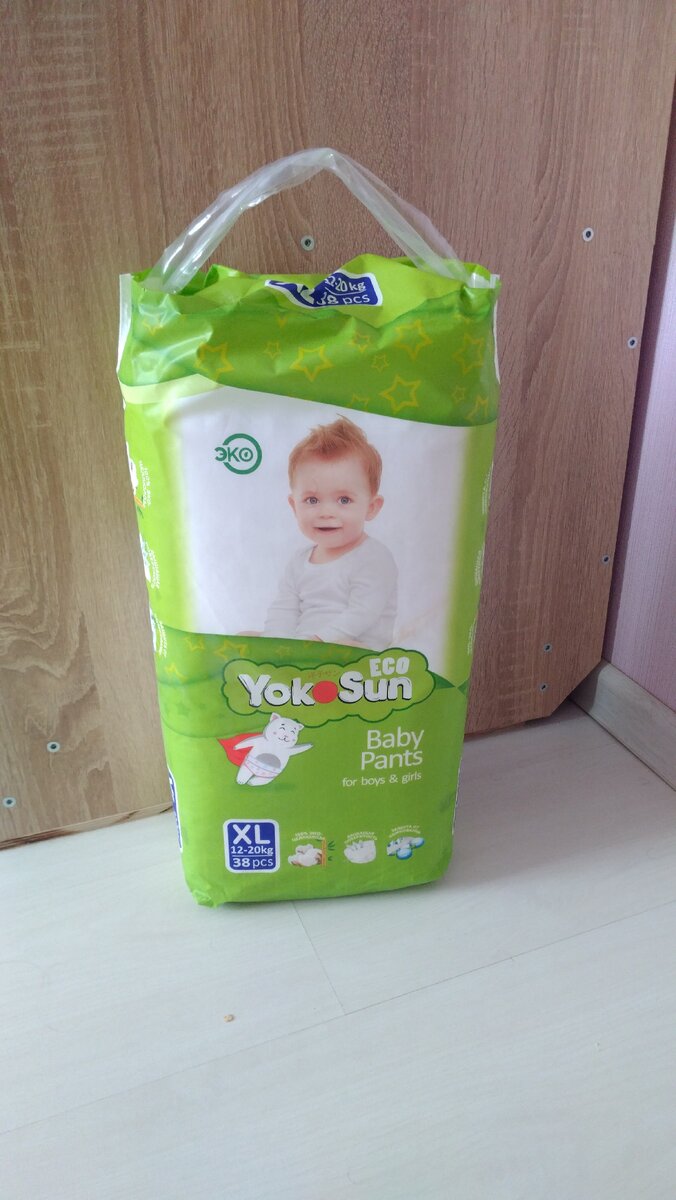 Японская разработка, но сделано на заводе в Китае. Качество хорошее, мягкие, следов почти не оставляют. Надеваются легко. Размеры от M до XXXL (6-30кг). И самое главное цена xl (38шт.) в супермаркете купил за 698 руб. В интернете можно найти дешевле.