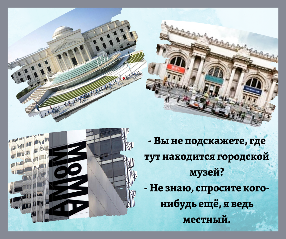 Здесь, в Нью-Йорке, я встречаю людей, посещающих музеи только в русскоязычной публике. Много американских знакомых, которые не считают нужным это делать. Я знаю людей из Джерси, прожив всю жизнь в 1 часе езды до Манхеттена, ни разу не видевших ни одного музея.