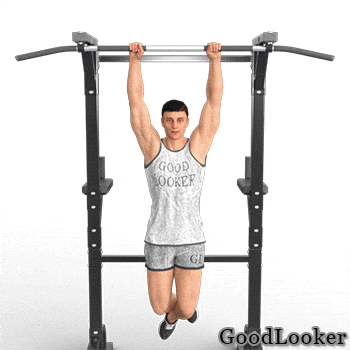 Это отличное упражнение для спины и развития верха тела. Повисните на турнике на прямых руках, можно согнуть ноги в коленях и скрестить их между собой. Делайте подтягивание, сгибая руки в локтях и пытаясь коснуться турника грудью. Опускайтесь вниз, полностью выпрямляя руки, чтобы хорошо растянуть широчайшие.