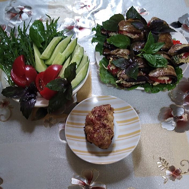 Котлеты из индейки и баклажаны с начинкой на обед