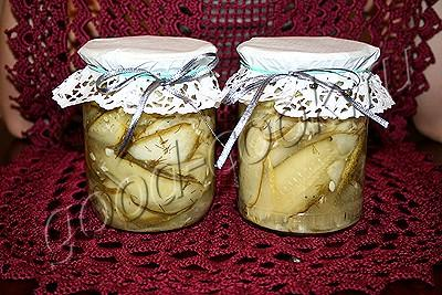 После настаивания пластинки огурцов стали пластичными, но остались хрустящими. Очень аппетитный аромат чеснока, укропа и горчицы. Думаю, что после вызревания эти огурцы станут ещё вкуснее.