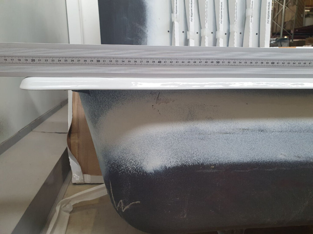 Сегодня, перед съемками чугунных ванн wotte по многочисленным просьбам сравнили ванны под брендами Wotte и Универсал на ровность бортов :) Итак, уровень на ванне Wotte: Уровень на ванне Универсал: Обычно, на съемках видеороликов нам помогает наш друг и партнер, - специалист по монтажу сантехнического оборудования. Мастер перед тестом был уверен в одинаковом результате и заявлял о том, что нет идеально ровных бортов на российском чугуне. После проведенного теста, специалист еще около 30 минут вымерял уровнем полы на месте тестов одной и второй ванны; просил ставить ванны на пол и паллеты; просил снять для тестов еще несколько ванн и по факту результат одинаковый :) По-крайней мере на данный момент, чугунные ванны Wotte явно ровнее. Очень надеемся, что производитель со временем будет только улучшать качество товара. Также, невооруженным взглядом заметно, что эмаль ванн Wotte явно белее, чем Универсал. Поры на ваннах Wotte - вовсе отсутствуют. Черные точки есть, но менее заметные и в ме