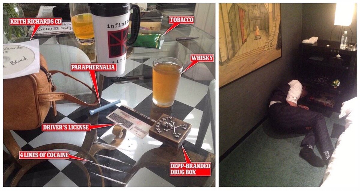 В Британии вовсю идет «суд века» между бывшими супругами Джонни Деппом и Эмбер Херд Напомним, Херд через СМИ обвинила Деппа в насилии и побоях, на что тот подал ответный иск за клевету и предоставил доказательства того, что Херд над ним издевалась и била. За время суда на обоих выльется много грязи, но Херд начала публично и с козырей — показала фотографию «завтрака» Джонни. В него входит 4 дорожки кокаина, стакан виски, табак и некие таблетки в коробочке. Актер ничего не стал отрицать, только отметил, что его бывшая жена была не прочь присоединяться к такой «трапезе», а ещё напомнил, что бывшая насрала ему в постель и отрезала кусок пальца.