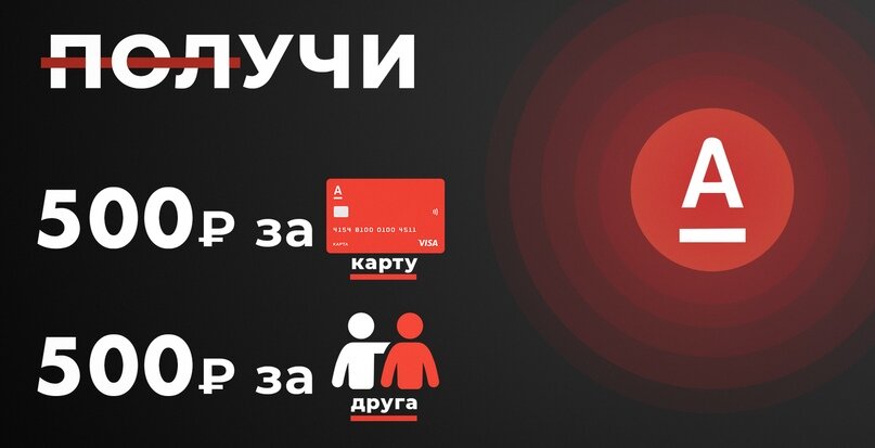 Альфа-Банк добавил реф. программу! И платит 500 рублей за оформление и 500 рублей за каждого друга!