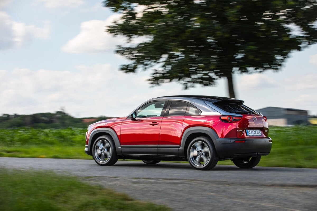 В дополнение к дизайну, MX-30 также получает очки за свои характеристики вождения. Сначала он мягко наклоняется в углы, но затем он просматривает их с четким обзором. В то же время он действует ловко и легко. Несмотря на то, что батарея весит 310 килограммов, масса снаряжения по-прежнему составляет разумные 1645 килограммов. Это также приносит пользу комфорту, шасси и весь автомобиль жесткие, но они могут маскировать большинство отверстий перед экипажем. Все это несмотря на простую заднюю ось с продольными задними рычагами.