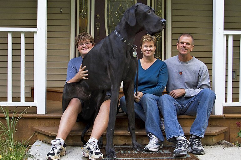 3-летний немецкий дог по имени Зевс из Отсего, Мичиган, был отмечен в новой книге Рекордов Гиннеса 2013, как самая большая собака из когда-либо зарегистрированных. Его высота составляет 111.8 сантиметров от ноги до холки. Предлагаю Вам подробнее узнать об этой исполинской собаке, а так же полюбоваться красивыми фотографиями величественного пса. На LifeGlobe есть множество других статей о собаках, которые можно найти в разделе "Природа". Удивительно то, что Зевс всего на несколько сантиметров обогнал предыдущего рекордсмена, о котором мы также уже писали. При чем, пес по имени Гигантский Джордж был той же породы. Предыдущим рекордсменом был Гигантский Джордж, уступивший Зевсу всего на 2 сантиметра. На этих фотографиях, опубликованных 13 сентября 2012 и сделанных 3 ноября 2011, запечатлен 3-летний немецкий дог по имени Зевс. Он упоминается в Книге Рекордов Гиннеса 2013, как самая большая собака в мире. Немецкий дог достигает 2.2 метра в высоту, стоя на его задних. Гиг