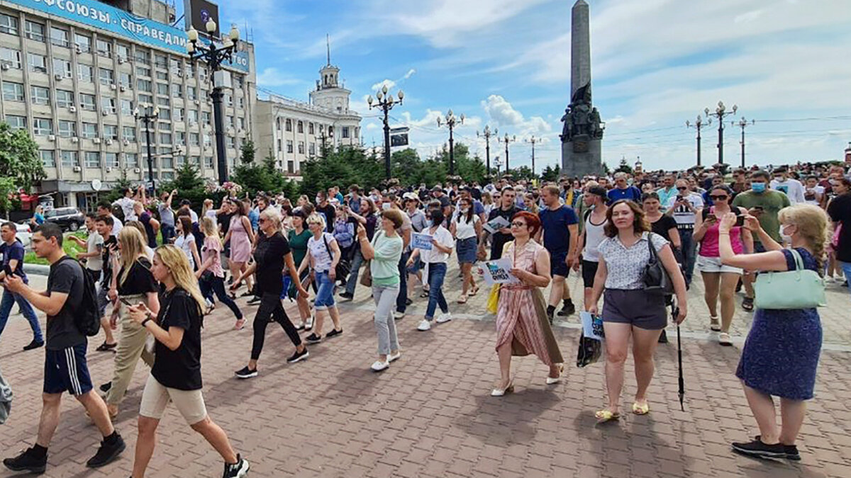 Правительство региона напомнило об ответственности за участие в несанкционированных акциях и попросило протестующих разойтись. Официальной информации о числе демонстрантов нет, но, по данным местных СМИ, их меньше, чем накануне. В Хабаровске вновь в воскресенье продолжились протестные акции в поддержку арестованного губернатора края Сергея Фургала. На центральных улицах города прошел автопробег, группа жителей устроила шествие по улице Ленина, люди собрались у здания правительства региона с требованием открытого суда над губернатором.