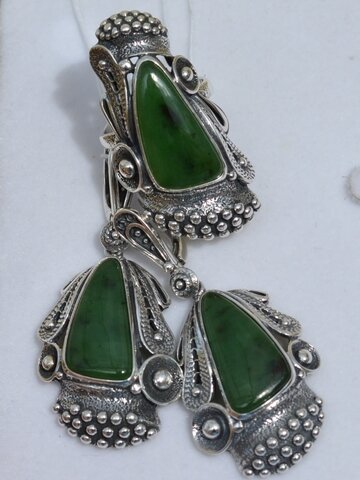 Кольцо и серьги "Сирена-нефрит"