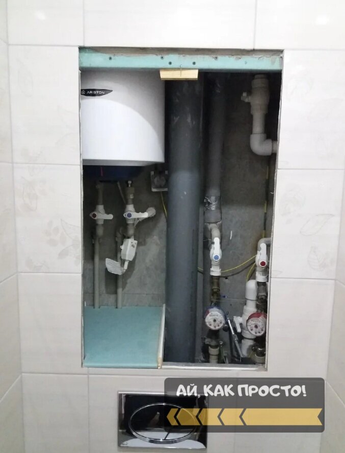 Когда мы делали ремонт в ванной, то столкнулись с такой проблемой - надо спрятать коммуникации. Но как это лучше сделать? Замуровать совсем? Нельзя! Мало ли что произойдет, а доступ к ним должен быть всегда. Уверен, что многие задавались этим же вопросом. Перебрали всевозможные варианты, которые есть в интернете. Но найти действительно правильное решение так и не удалось. Пришлось включить голову)) Итак, представляю на Ваш суд мой способ. Возможно, Вы такое уже видели, но мне такое не попадалось. Делать, как в мультике " и так сойдет.." не хотелось. Поэтому жалюзи и пластик даже не рассматривали. Если уж делать, то как положено. Кто-то будет подсказывать "люк-невидимка, люк-невидимка", но от этого варианта мы отказались и на это есть причины. А именно: В первую очередь, нам нужно было скрыть бойлер. Естественно, люк получится очень большой. Если заложить его плиткой, то в случае поломки придется пол стены разобрать. А выполнять такой объем работы лишний раз мне не хотелось. Да и к
