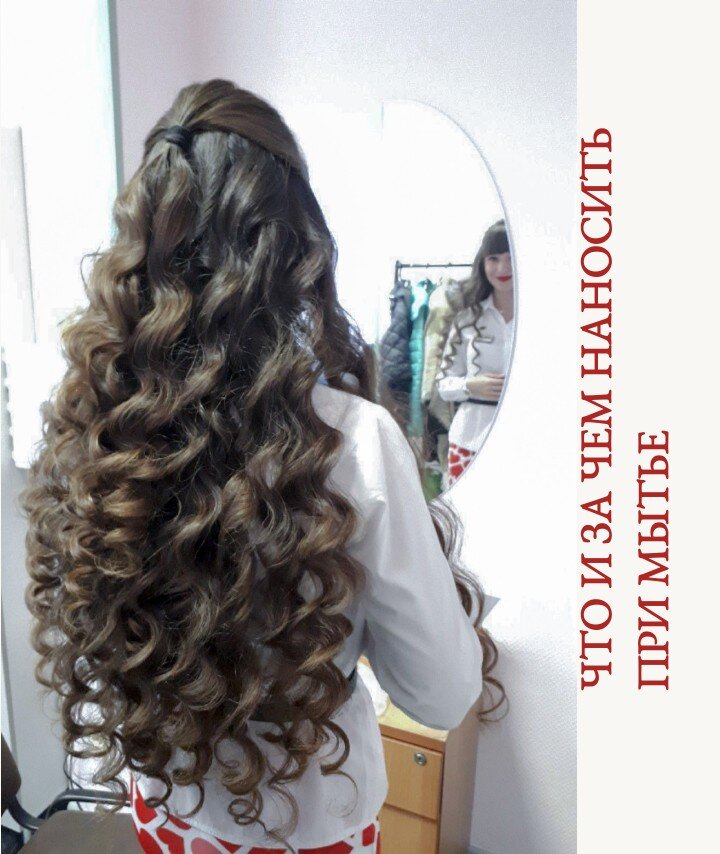 Порядок применяемых при мытье волос средств – это схема ухода. Схемы смываемого ухода: Используйте бальзам/кондиционер или маску после каждого мытья, особенно если хотите отрастить длину. Почему нельзя просто помыть волосы шампунем и всё? Шампунь предназначен только для очищения кожи головы и волос. Поэтому, когда мы его смываем, волосы остаются «голыми». Что это значит? Во время мытья чешуйки волос приподнимаются и волосы становятся уязвимыми для повреждений даже от самых слабых воздействий: трение об одежду и наволочку, расчёсывание, ветер и т.д. Маски, бальзамы и кондиционеры создают пленку на волосах, защищая их от внешних воздействий и повреждений, приглаживают чешуйки волос и делают волосы гладкими и блестящими. Пленка в данном случае – это хорошее слово, полезное. С шампунем всё понятно. Но почему же в некоторых случаях после маски нужно использовать бальзам/кондиционер? Это зависит от действия и компонентов маски. Если маска работает на волосах «не в полную силу», то можно