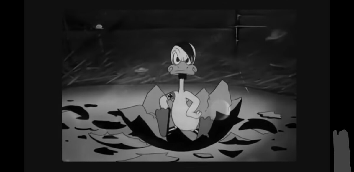 США подписала контракт со студией "Disney" на создание пропагандистского мультфильма. Как только не показывали Гитлера, тощим больным слабоумным стариком, но уткай. Данный мультик был создан для насмешки над нацистами показывая всю их глупость. В итоге утка Гитлер был побеждён и всё