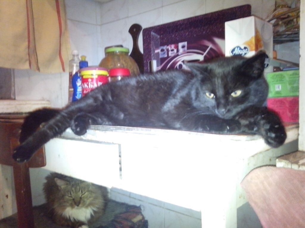 Котя –ёжка. Такое прикольное прозвище эта мадам получила за любовь к приключениям. Обнаружилась она в наших дворах примерно в 2014-м году уже подросшим котёнком, которого пришлось снимать всем двором с дерева. Как она туда попала одному Богу известно…после стерилизации жила у нас во дворах и постоянно попадала в какие-то экстремальные ситуации…то под капот машины залезет, то из под колес однажды еле выпрыгнула, пришлось забирать ,т.к. пиар толку не давал, но и дома она с лихвой продолжает чудить..пытались пристроить в деревню, возвращали, в общем так у нас и живет этот домовёнок ёжка, из за которой у нас в доме постоянно случается какой-нибудь коллапс..но мы ее полюбили! Она вносит разнообразие в нашу скучную жизть…В общем ей уже около 5-ти лет.
