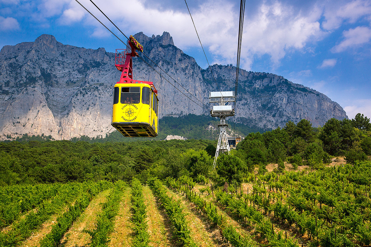 Смотровая площадка Ай-Петри и канатная дорога на неё – является чуть ли не главной туристической достопримечательностью под Ялтой и в целом в Крыму. Будьте готовы, что в очереди придется отстоять не 1 час. Наберитесь терпения - виды сверху и ощущения от поездки на канатной дороге стоят того. Кстати как альтернативный вариант вам будут настойчиво предлагать поехать на такси (микро-автобусе) - на самом деле можно согласиться, если стоять в очереди не хотите (цена что на канатной дороге, что на такси - одинакова 400 рублей за взрослого). В видео блоге я, как всегда, снял всё самое интересное из путешествия на Ай-Петри - можете оценить невероятные виды, которые открываются сверху: Канатная дорога на Ай-Петри Вообще канатная дорога, которая ведет к вершине Ай-Петри, расположена в поселке Мисхор, который находится в 20 километрах от Ялты. Канатную дорогу начали строить еще 60-х годах при Хрущеве и задумывалась она как самая длинная канатная дорога в Мире (Суммарная длина дороги составляет 2