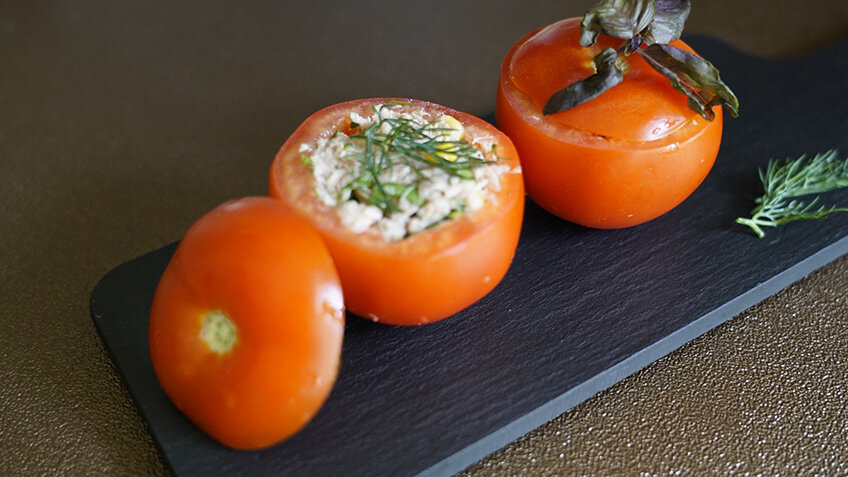 Популярная холодная закуска, очень легкая в приготовлении. Такие фаршированные помидоры с начинкой станут отличной альтернативой овощной нарезке, разнообразят и украсят праздничный стол и обязательно удивят ваших гостей.