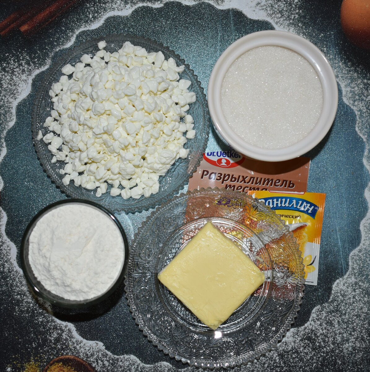 Творог, муку, масло (комнатной температуры), соль, разрыхлитель и ванилин смешать воедино. Обратите внимание, сахар на данном этапе не нужен. Должно получиться однородное тесто, которое отправляем в холодильник на часок. Из прохладного теста удобнее будет лепить печенье.