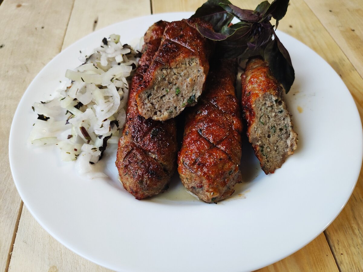 Здравствуйте друзья, хочу поделится с Вами вкуснейшим рецептом люля-кебаб. Простой и очень вкусный рецепт, без использования шампуров!!! Ингредиенты: 1. Фарш свино-говяжий - 500 грамм 2. Фарш индюшиный - 500 грамм 3. Лук репчатый - 250 грамм 4. Шпик свиной - 250 грамм 5. Зелень (кинза, базилик, петрушка, укроп) 30 грамм 6. Сушеный тимьян - 1 чайная ложка 7. Молотый кориандр - 1 чайная ложка 8. Молотый черный перец - 1 чайная ложка 9. Соль - 2 чайные ложки 10. Сахар - 1 чайная ложка Приготовление Сало шпик, лук репчатый, зелень - мелко шинкуем. В фарш добавляем сухие ингредиенты (кориандр, черный перец, тимьян, соль, сахар). Следом всыпаем нашу зелень и мелко нарезанный шпик с луком. Важно! Необходимо хорошо вымешать наш фарш (10-15 минут). Оставляем в холодильнике на 2-4 часа (можно и на целую ночь) После того, как наш фарш "отдохнул" и пропитался всеми ароматами, формируем продолговатые "колбаски". Чтобы легче было работать с фаршем, необходимо его подморозить, а руки смазывать раст