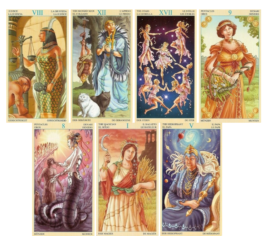 Прошу прощения у кверента за столь долгое ожидание. Подчеркиваю - это индивидуальный расклад для человека, который прислал свои данные. Но приступим к раскладу. И опять вышло чуть больше трех карт. :) Продолжатся ли отношения в июле Справедливость пп Нет. И судя по выпавшей карте складывается впечатление, что и предпосылок к продолжению особых и не было. Мысли и планы мужчины на эти отношения Повешенный пп По сути никаких планов у него нет. Сейчас мужчина занят своими личными делами и вопросами, решением каких-то личных проблем. Ему буквально не до того. Мысли и планы женщины по поводу отношений Звезда + 9 пентаклей А вот у девушки еще есть какие-то надежды на счет мужчины. Ей хочется сделать отношения более стабильными, материальными, физическими. Пусть это ее слегка и ограничит. Желает ли мужчина продолжать общение 8 пентаклей пп Здесь тоже тишина. На данный момент его это не интересует. Как и Повешенный пп эта карта указывает на то, что сейчас у мужчины достаточное количеств