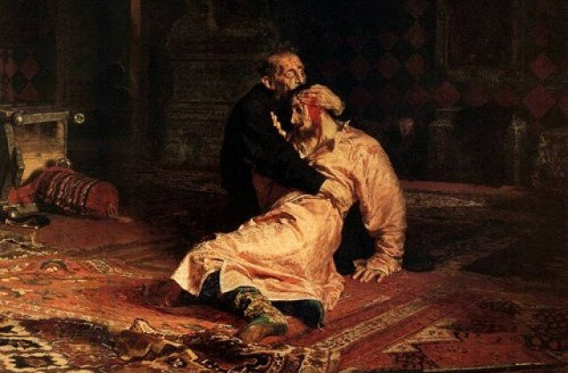 В этот момент, в комнату забежал сын и начал защищать свою жену, сын пытался давать отпор отцу, но в какой-то момент, Иван, ударил сына посохом по виску, и тот умер, так вы слышали эту легенду? На самом желе, все было иначе. Мало кто знает, но до этого момента, отец специально строил козни убийства сына ради своей выгоды, на самом деле, все было подстроено изначально, под "случайность" Ивану было не выгодно держать сына с женой в королевстве, по словам прислуги, они раздражали царя свои присутствием...