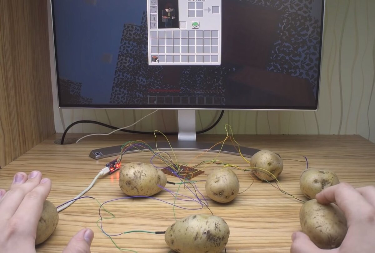 Если у вас не получается пройти игру, используя клавиатуру и мышку, может стоит прибегнуть к альтернативным контроллерам? Вчера мы писали, как блогер под ником Jachael123 смог поиграть в Minecraft и даже убить Дракона Края, управляя персонажем с помощью пианино. На этот раз, другой блогер с ником _Skrepka использовал для прохождения игры самую обычную картошку! Для этого ему понадобились несколько картофелин, провода для соединения, микроконтроллер и модуль акселерометра для мыши, а также небольшие знания в программировании и умение работать с паяльником. Каждый из корнеплодов был запрограммирован на выполнение какого-либо определённого действия. Для игры в Minecraft _Skrepka назначил на картофелины следующие функции: вперёд, прыжок, инвентарь, левая кнопка мыши, правая кнопка мыши, скролл и сама мышь. Посмотреть, как всё это работает, можно на этом видео: Блогер утверждает, что суммарно установка из корнеплодов обошлась ему менее 400 рублей, то есть дешевле, чем самая дешёвая клавиату