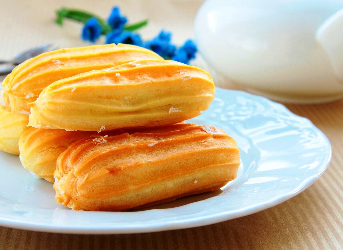 Выпекать эклеры в разогретой до 180-200 градусов духовке примерно 30-35 минут. Духовку при выпечке не открывать. Заварное пирожное должно быть сухим, легким, золотистого цвета, с пустой серединкой.