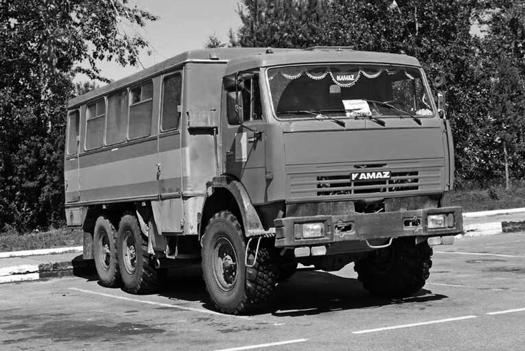 Отличным примером для этого случая может служить вахтовый автобус на шасси КамАЗ 43114, сохранивший все технические характеристики грузовика. Отметим, что бортовая и универсальная вариация отличались длиной 7,73 против 7,63 метра, соответственно.