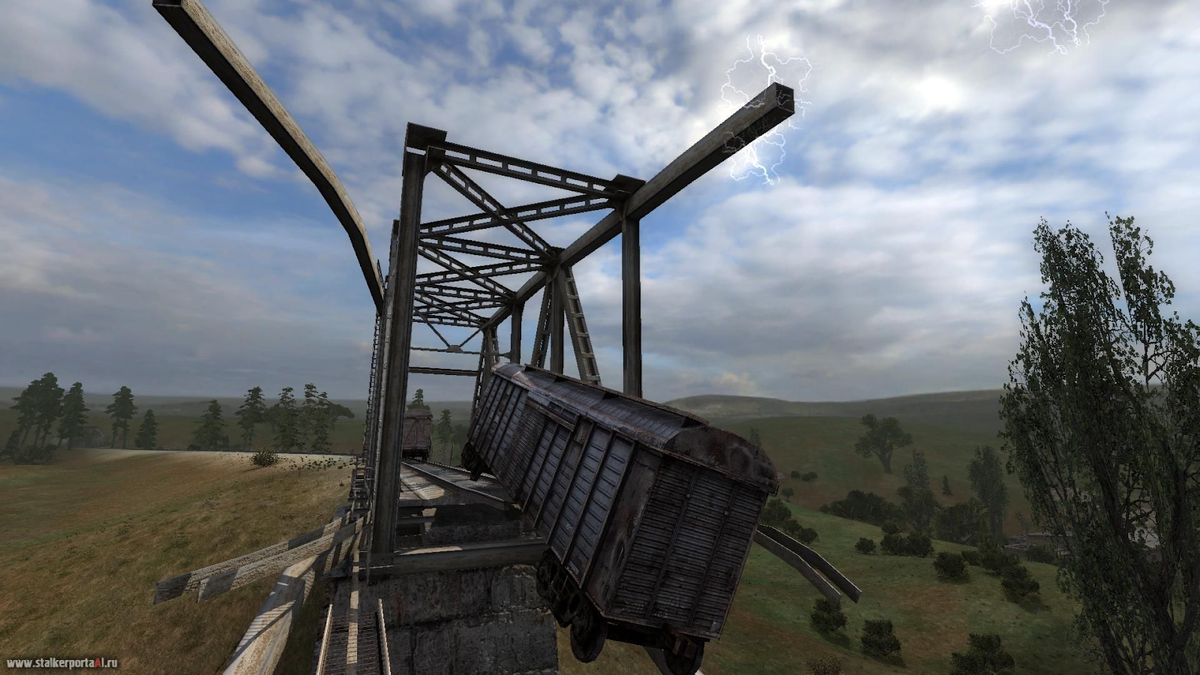 На Кордоне, если верить старожилам, когда-то тоже “жила” пространственная аномалия. Говорили, идешь по железнодорожному полотну в какой-то момент видишь в тупике поезд. Начинаешь двигаться к нему. Идешь, идешь, почти дошел. Кажется, протяни руку и можно потрогать состав. Делаешь шаг. В глазах все темнеет, а когда вновь появляются краски, оказываешь на том месте, где первый раз увидел состав. Проводили эксперимент. Шли к этому составу целую неделю. Никто не дошел. Определили место, после которого возвращаешь. Закидали его болтами. Часть болтов попадала по составу, часть возвращалась в ту же точку, куда выбрасывало людей.