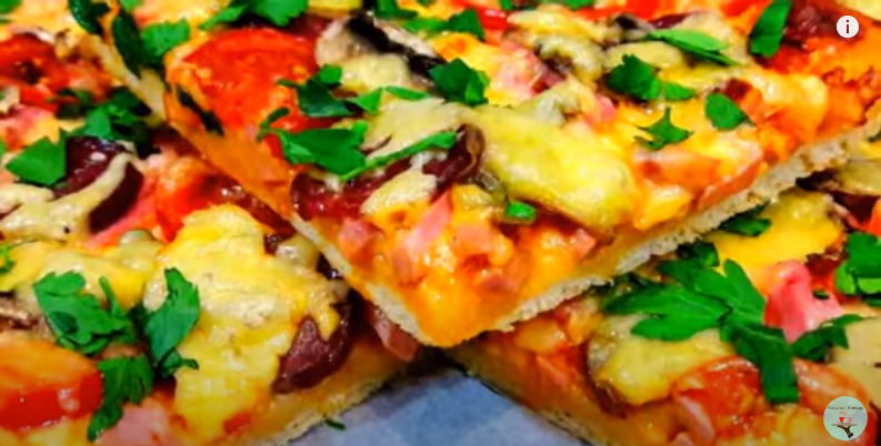 Для теста: Мука - 2,5 ст.(стакан 250 мл.) Молоко - 1 ст.(стакан 250 мл.) Дрожжи сухие - 6 гр. Масло растительное - 2 ст.л. Сахар - 1 ст.л. Щепотка соли. Для начинки : Колбаса докторская - 400 гр. Колбаса сухая - 150 гр. сыр твердый - 150 гр. Помидор - 3 шт. Шампиньоны - 5 шт. Для соуса : Майонез - 4 ст.л Томатная паста - 2 ст.л