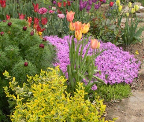 Если вам нравятся природные камни в оформлении цветника, обязательно высадите рядом с ними шиловидный флокс.