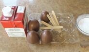 Сахарная пудра - 2 ст. ложки (по вкусу) 1. Подготавливаем сливки (охлажденные), сахарную пудру и шоколадные яйца. Также понадобятся деревянные палочки для мороженого.