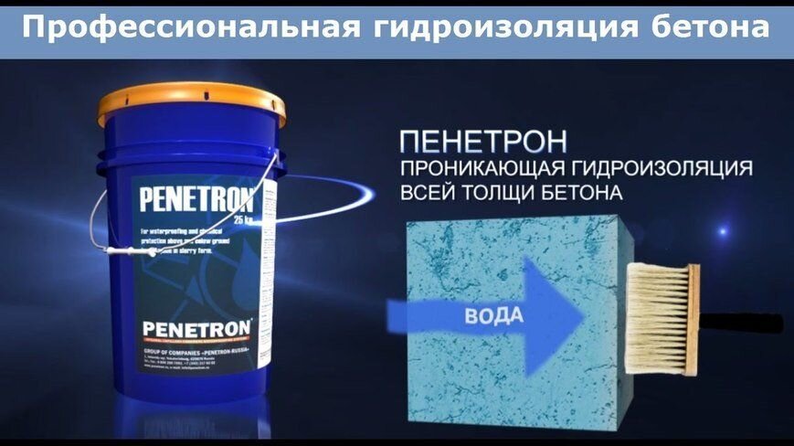Проникающая гидроизоляция – это современная технология, которая в основном используется для внутренней обработки. Ярким представителем проникающей гидроизоляции считается система материалов Пенетрон. Ее основное назначение – сделать бетон водонепроницаемым. На сегодняшний день – это одна из лучших гидроизоляций для подвальных помещений, которую можно сделать своими руками. Фактически это смесь, в которую входят цемент, кварцевый песок и активные химические добавки. Именно последние проникают вглубь бетонной конструкции, закупоривая капилляры, по к