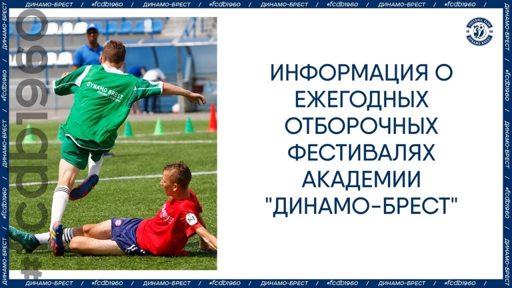 С 23 по 26 июля 2020 года в г. Ошмяны, Центр подготовки "Северо-запад" ООО "ФК " Динамо-Брест " пройдет отборочный фестиваль мальчиков 2009 и 2010 года рождения для последующего обучения в данном Центре. Дополнительную информацию о месте, дате и времени проведения фестиваля можно уточнить по следующим номерам: +375 44 7500363 +375 29 6537142 При себе иметь: 1. Справку о состоянии здоровья из диспансера спортивной медицины или от врача- педиатра. (В справке должно быть указано, что ребенок не является контактом 1 или 2 уровня COVID-19). 2. Спортивную форму для занятий на улице. 3. Спортивную обувь для занятий на искусственном покрытии.