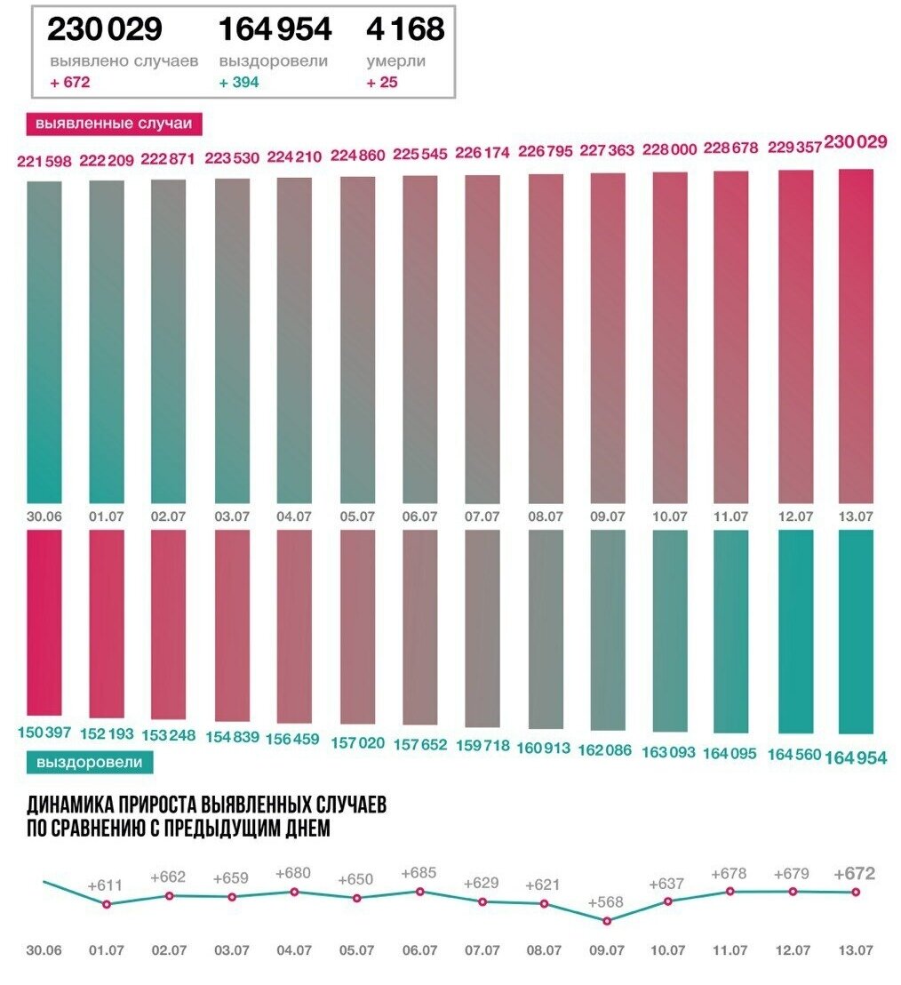 ❗️Как меняется число выявленных заболевших и выздоровевших от коронавируса в Москве: 13 июля