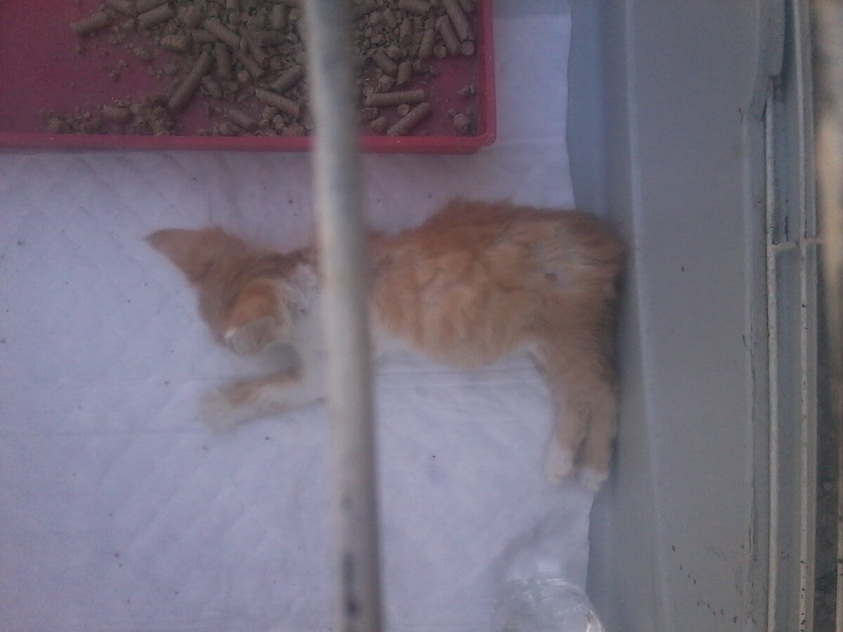 Дикари из Тумбы-Юмбы Семашко, бросили на рынок маленького котенка 1.5 месяца максимум. Хозяйка приюта "Рыжий кот" вообще не собиралась никого брать, но хватило несколько секунд ... Котенок бегал по рынку тыкаясь всем в ноги, его никто не замечал, полное равнодушие, пол тысячи блох сжирали его живьем, живот раздут (глисты), раны от укусов собак по всему тельцу. Голод, холод, матери рядом нет, это