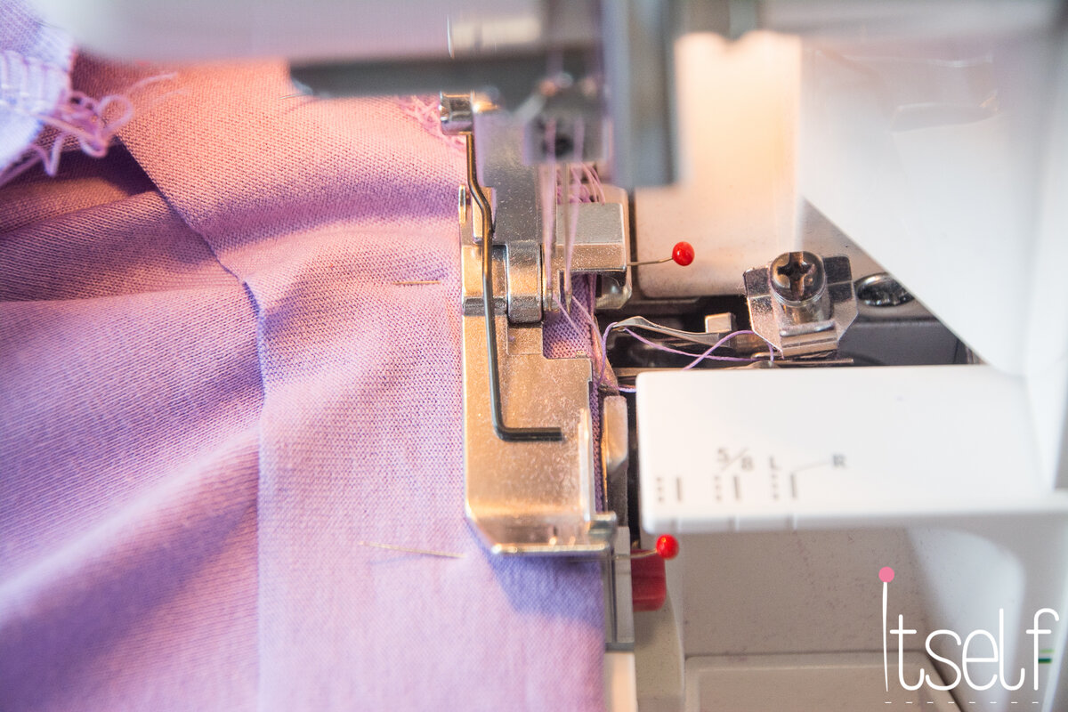 Можно, конечно, просто обрезать под корень, но после стирки нитки могут распушиться. Нам понадобится оверлок, без него оверлочную строчку прятать будет сложно:)