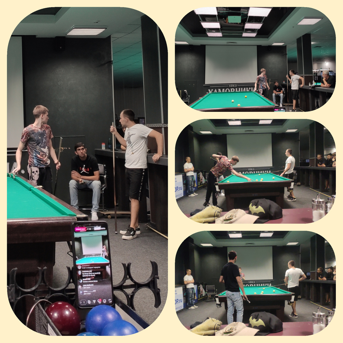 Воскресенье. В "Легенде" людно. Еженедельный турнир, гости играют, я тренирую. Вечером стало повеселее. Приехал Крыжановский, Абрамов и Белозёров. После обсуждений во что и почём играть, Крыжановский и Белозёров начали колхоз по 10000₽ за шар. По истечении трех партий, счет был равный. Мой Telegram канал Небольшой перерыв и игра принимает другой оборот. Белозёров встал "королём" vs Крыжановский/Абрамов. Куш остался прежний, но были условия, что одну партию пара играет через удар, а другую каждый заканчивает свою серию. Первая партия 12/4 в пользу пары. Счёт + 8. Вторая партия 7/9, теперь уже в пользу Белозёрова. Пара +6. Третья партия "обраточка" 9/7 и счёт опять +8. Четвёртая пария 12/4 и теперь Белозёров проигрывает 16 кушей. Пятая партия и пара опять выигрывает 9/7. Счёт +18 в пользу пары. Шестая партия Белозёров выигрывает 9/7. Счёт стал +16 кушей в пользу пары. Небольшой перерыв и игра продолжается, но теперь один на один , Крыжановский vs Белозёров. Первая партия за