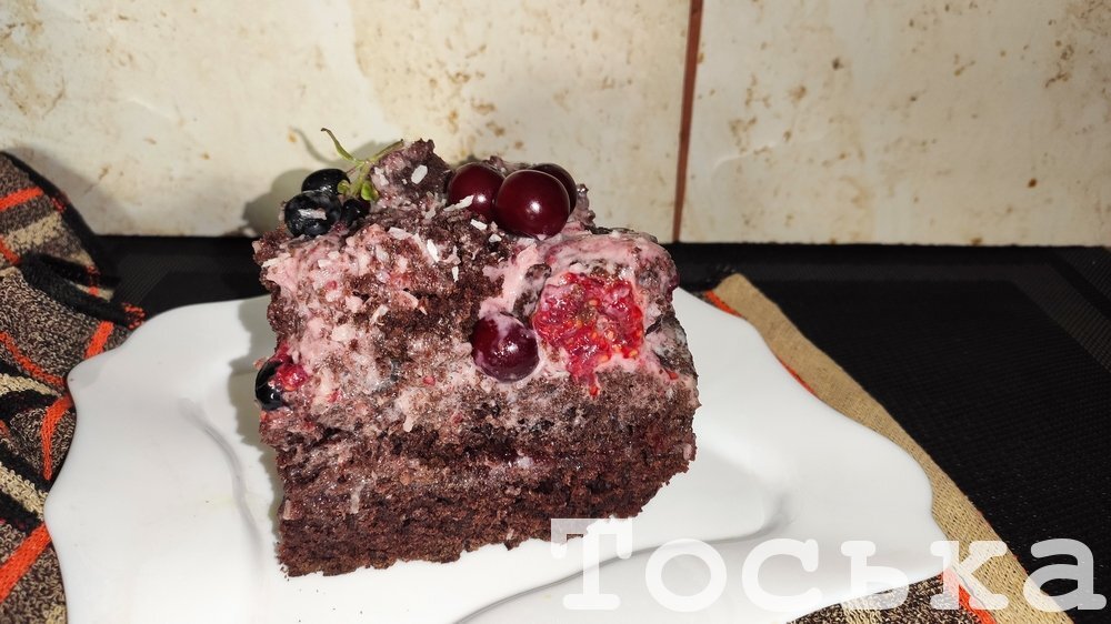 Все, что занимает на кухне больше полчаса моего времени - мне не нравится! Я люблю рецепты быстрые и простые, с которыми не нужно заморачиваться. Вот этот рецепт торта меня просто покорил - минимум возни, и отличный результат! Ингредиенты: Продукты собрали, дальше все более, чем просто! В одной миске соединили сухие составляющие, в другой смешали жидкие, и затем все соединили. Что может быть проще? Тесто для торта готово! Дальше переложили его в мультю, включили режим выпечка. Когда у меня 50 минут закончилось, я включила повторно. Через 15 минут достала корж и перевернула, допекла выставленное врем. Достать, остудить, разрезать вдоль на 3 коржа и перемазать, чем захочется, любым кремом. Я перемазывала один слой сгущенкой, второй сгущёнка и малиновое суфле. Третий корж я поломала на куски, которые обваляла в креме и выложила сверху на тортик, украсила ягодами. Через пару часов можно кушать, очень вкусно! Приятного аппетита! Если рецепт понравился - ставьте палец вверх, и подписывайтесь