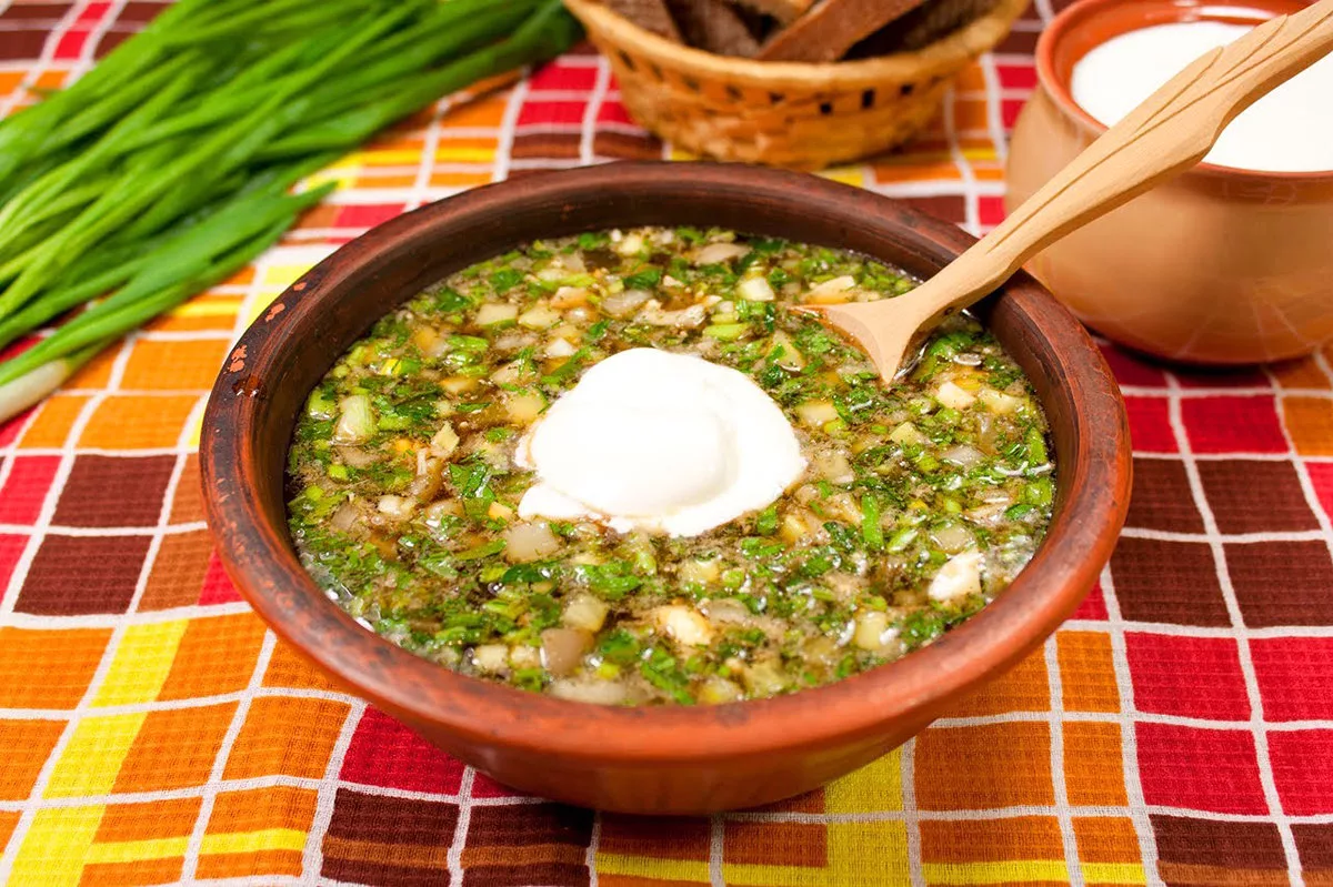 Продукты (на 4 порции) 1. Подготовить продукты. 2. Картофель с яйцами (яйца можно варить отдельно, это по желанию) сложить в кастрюлю, залить холодной водой и поставить на средний огонь. Довести до кипения, уменьшить огонь и варить 8-10 минут. Вынуть яйца, переложить в холодную воду, а картофель продолжить варить до мягкости, еще минут 10. 3. Пока варятся яйца и картофель, нарезать отварное мясо кубиками. 4. Укроп мелко порубить 5. Петрушку также мелко порубить. 6. Огурцы порезать мелкими кубиками. 7. Зеленый лук мелко нарезать 8. Нарезанный зеленый лук растереть с небольшим количеством соли, до тех пор, пока не появится сок. 9. Яйца почистить и порезать кубиками 10. Готовый картофель переложить в холодную воду на пару минут, а затем достать из воды, почистить и порезать кубиками. 11. Все нарезанные ингредиенты, кроме петрушки и укропа, соединить в большой кастрюле или миске. (При желании можно добавить в окрошку нарезанный редис.)Заправить сметаной и хорошо пере