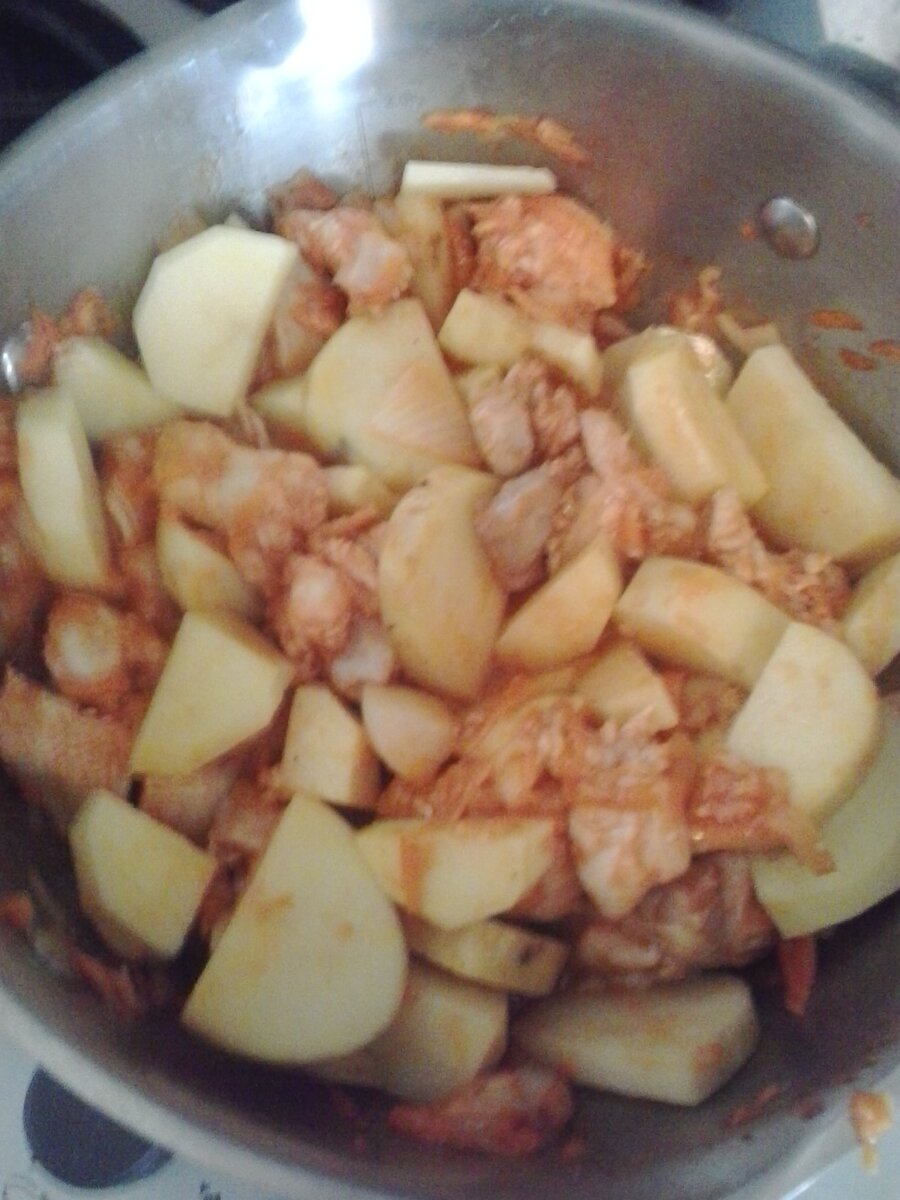 чистим моем и режем картофель добавляем воду и на мелёном огне тушим минут 15-20.