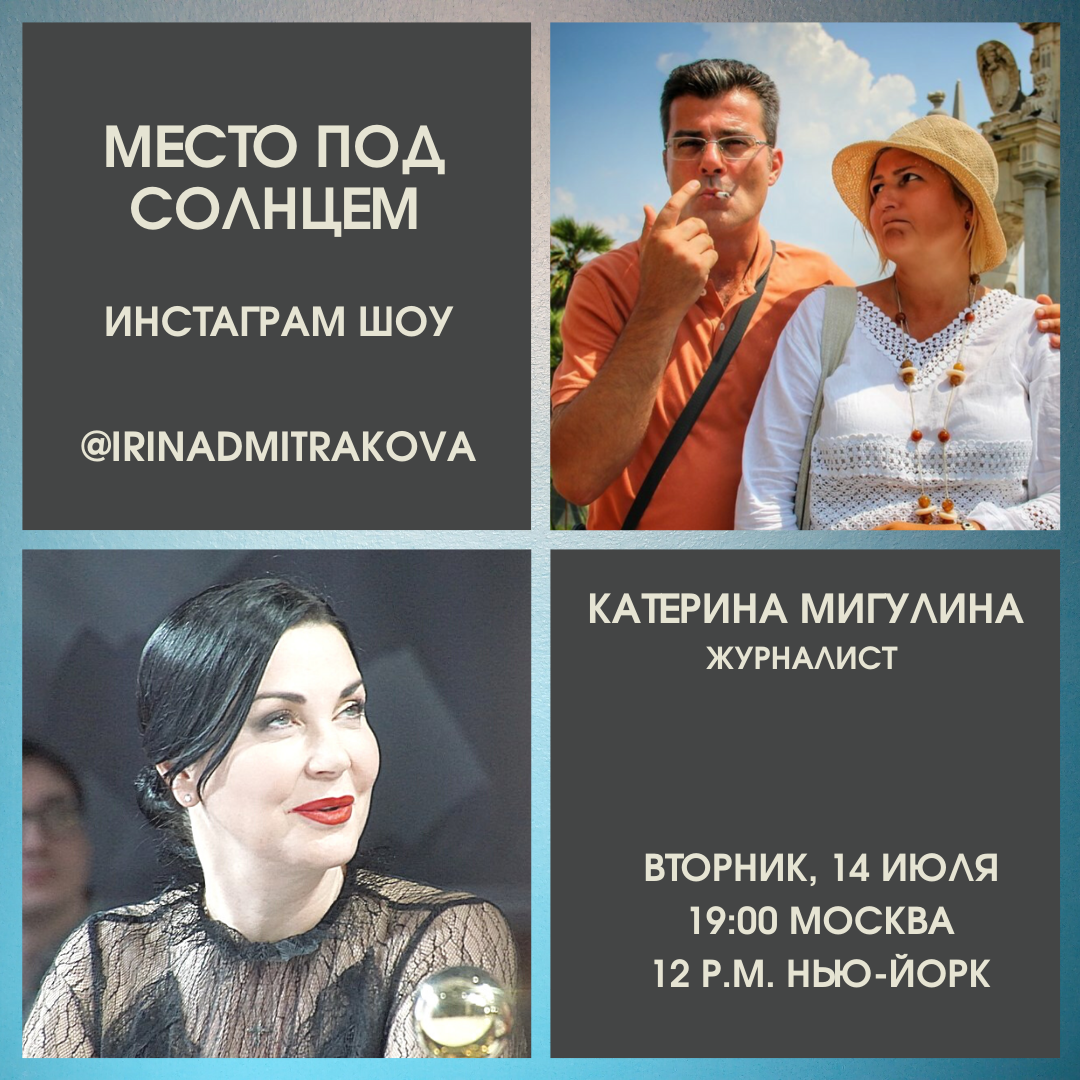 14 июля в 19.00 по Москве, в 18.00 по Италии, в 12.00 по Нью-Йорку смотрите или слушайте прямой эфир со мной у @irinadmitrakova