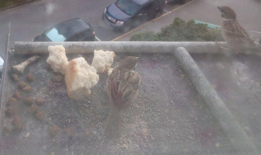 Ко мне на 4-й этаж прилетает на кормушку воробьеныш желторотый со своей мамашей и заставляет эту самую несчастную мамашу себя кормить, она там ему собирает какие-то крошки и зерна и кормит, а он халяву разевает и орёт. В какой то момент он ее достает, она посылает его нахер по-воробьиному и улетает. А эта малолетняя падла еще с полминуты приблизительно орёт, потом смотрит по сторонам, видит что его крики не имеют эффекта нужного и... сам начинает жрать, как взрослый самостоятельный воробей. Потом прилетает опять мамаша и всё по новой. Причем воробьеныш такой, достаточно упитанный и довольно взрослый, потому что, когда я подошел сфоткать эту катрину, он просто улетел. Даааа, совсем молодёжь охреневшая стала, короче.