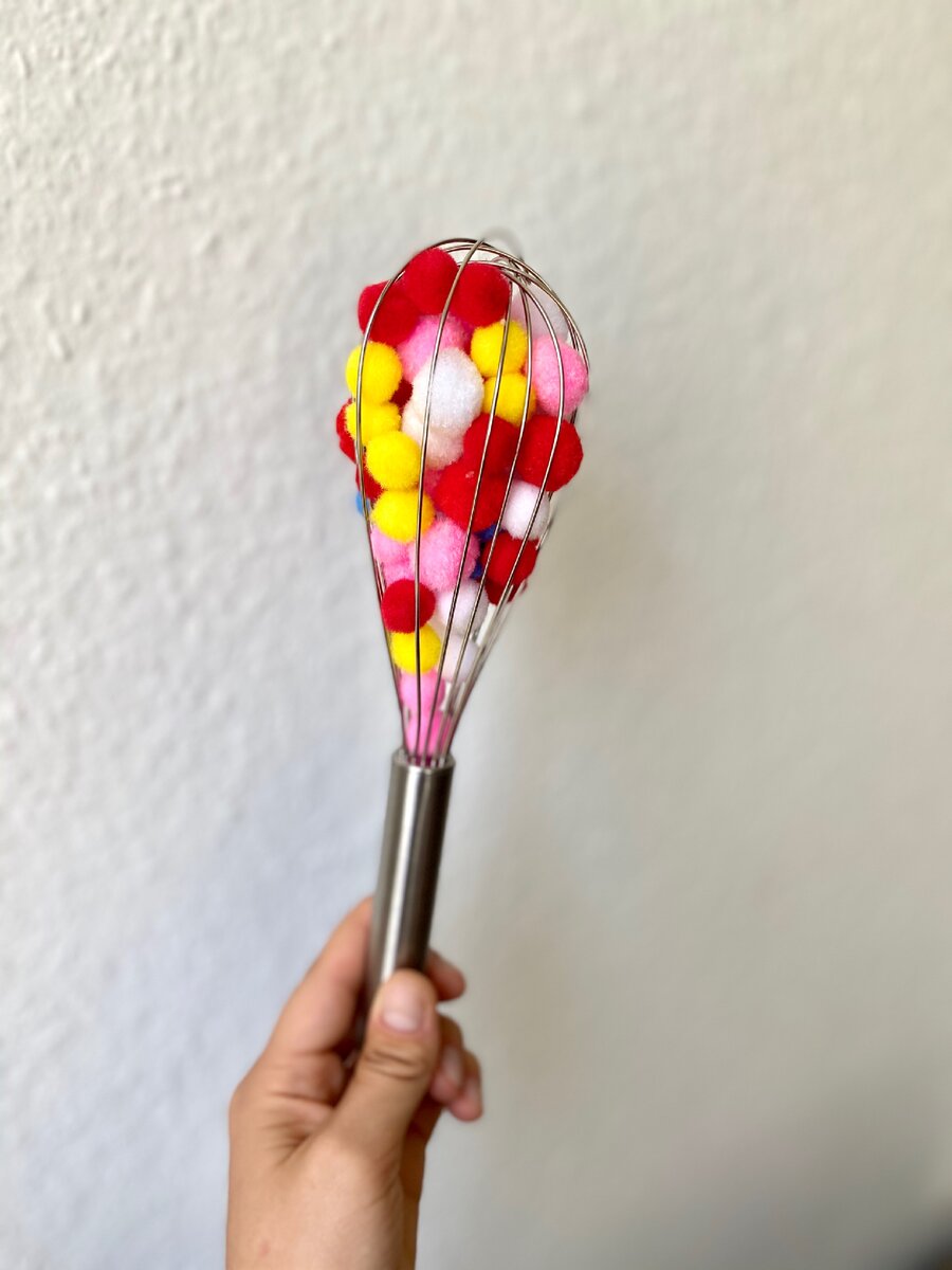 Игрушки из магазина - очень красивые и интересные. Но иногда у родителей либо нет возможности каждую неделю покупать новые игрушки либо хочется разнообразить детские игры. Вот несколько примеров, что вы можете сделать из обычного кухонного венчика. Первый вариант Возьмите в магазине для рукоделия( или в магазине, где продаётся мелочевка) мягкие шарики и просто наполните ими венчик. Малыш с удовольствием будет их доставать , а потом можете показать как шарики засунуть обратно. Второй вариант В таком же магазине возьмите пушистые палочки( это мягкая проволока обмотанная пушистой нитью) и в хаотичном порядке наполните венчик. Третий вариант Я оставила крышки от детских пюре и наполнила ими венчик. Четвёртый вариант Наполните венчик любыми геометрическими фигурами , а когда малыш будет их доставать объясните ему какую именно фигуру он достал. Варианты заполнения венчика зависят от вашей фантазии. С такой игрушкой ребёнок отлично развивает мелкую моторику, а у мамы появляется минут 20