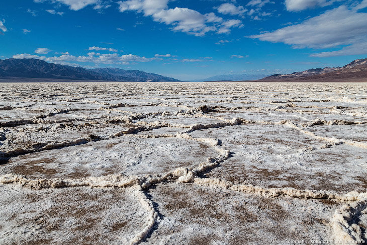 Пока наши футболисты дают жару на Чемпионате мира по футболу 2018, а в средней части России установилась теплая летняя погода, настало время показать вам, что такое настоящая жара. Долина Смерти находится в штате Калифорния. За последние 12 месяцев я побывал там дважды. Эта межгорной впадина давно считается одним из самых жарких мест на планете. Помимо сурового климата, Долина Смерти также известна расположенной на ее территории впадиной Бэдуотер, глубина которой составляет 86 метров ниже уровня моря, что делает ее самой низкой точкой земной поверхности в Северной Америке. При этом всего в 136 км от впадины расположена самая высокая точка континентальных США — гора Уитни (4421 м над уровнем моря). 1. Самая высокая температура в Долине смерти (56.7°C) была зарегистрирована 10 июля 1913 года. Это самая высокая температура, когда-либо зарегистрированная на Земле. По этому поводу идут дискуссии, поскольку есть еще одно место на планете, в Ливии, где температура поднималась до 58 градусов п
