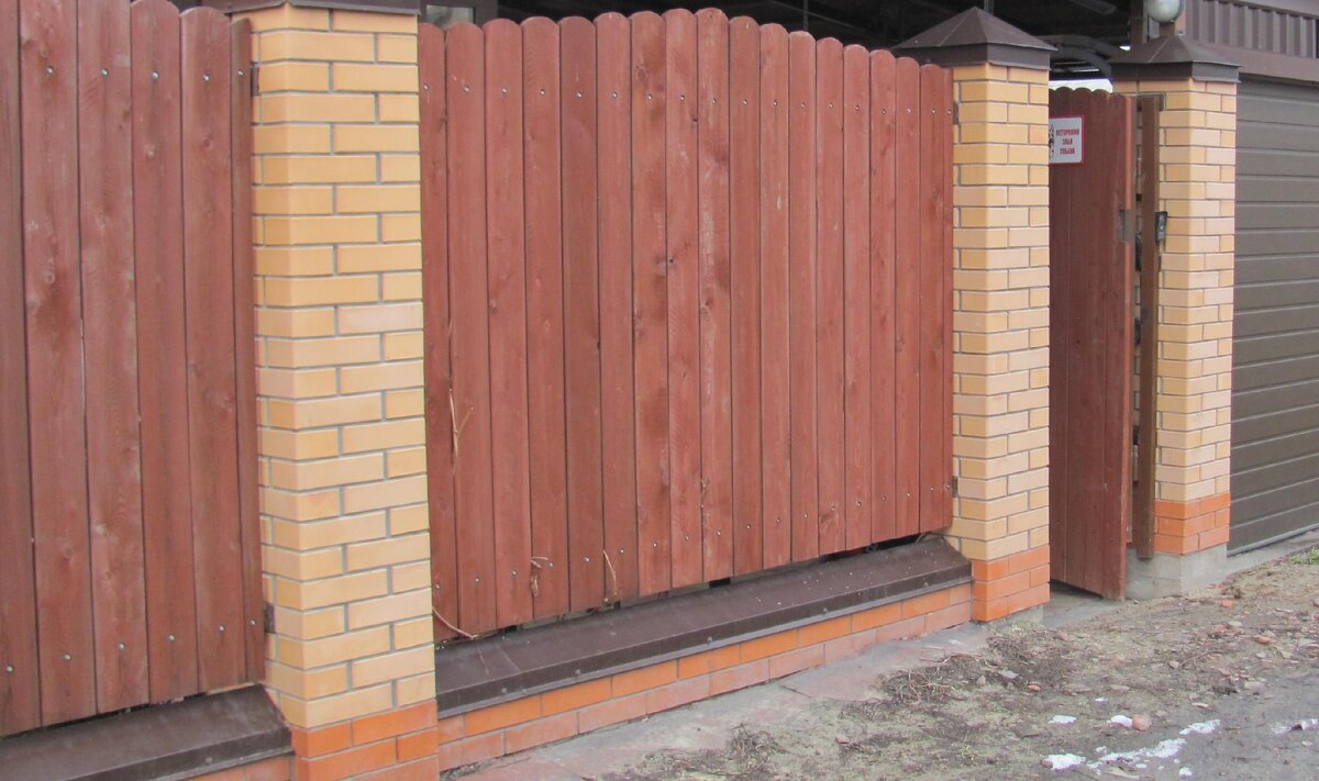 Для кирпичного трехметрового забора нужен капитальный фундамент на глубину промерзания грунта. Тут никуда не денешься. Но зачем закапывать в землю кубометры бетона, если заполнение между столбов будет легким (например, из профлиста или дерева), а внизу планируется всего несколько рядов кирпичной кладки?