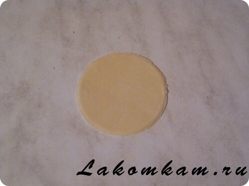 Курагу промыть, замочить в горячей воде на полчаса, воду слить и пропустить через мясорубку. Добавить сахар по вкусу. Тесто раскатать и вырезать круги как на пельмени.